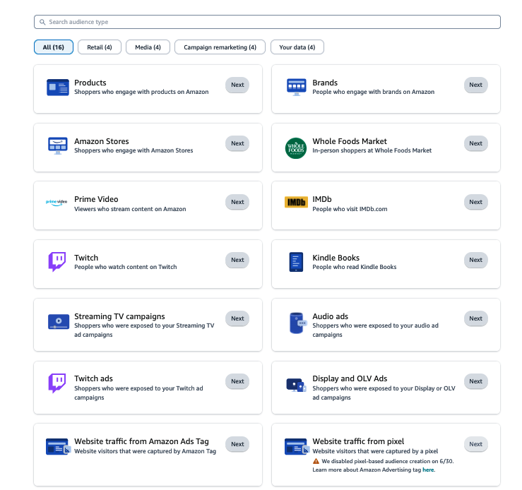 Target customers throughout their journey with tailored audience strategies. Combine Amazon’s rich data with your existing audience insights to maintain top-of-mind awareness, influence buying decisions, and foster long-term brand loyalty.