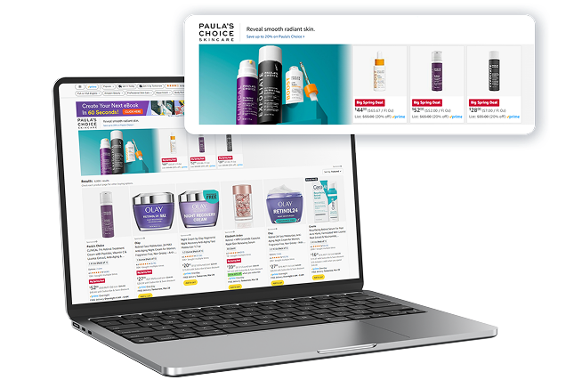 Own top-of-search and prime real estate by leveraging Sponsored Brand ads. These unique ads empower us to craft messages, showcase products, and drive traffic to your Amazon store.